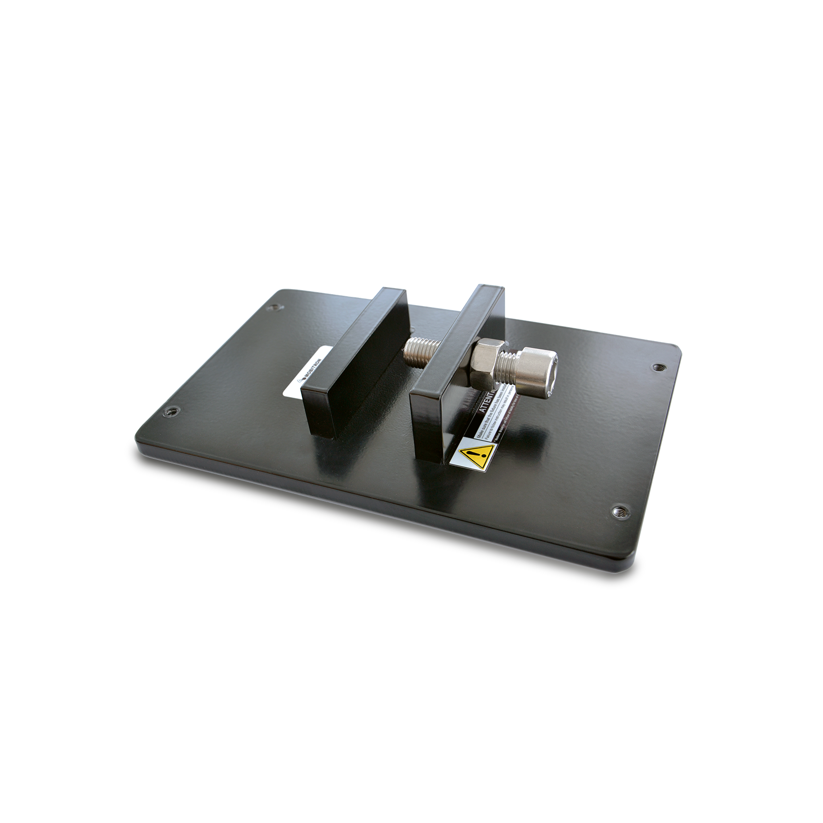 The mounting console is designed to provide a secure and stable installation of the metal enclosure directly onto cargo. It is intended for attachment to beams or similar structural surfaces, ensuring reliable positioning during transport.